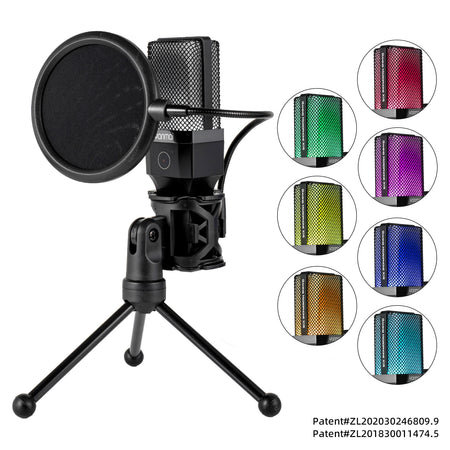 Condenser Professional Microphone Mic For PC Laptop Computer Gaming USB Wired Streaming Podcast Studio Mike Kit Gamer Accessory